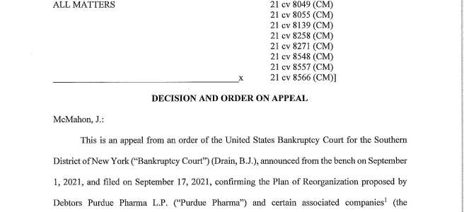 Link to a copy of the order in the #PurduePharma #Bankruptcy plan appeal. It’s an inside baseball thing but I’ve never agreed these Section 105 releases were lawful and this #SDNY district judge agrees.