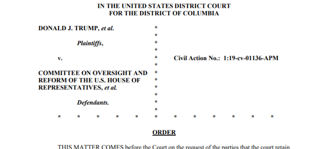 In the suit in which #45 tried to block Mazars turn over of records, the DC district court, the judge has entered an order approving the stipulation requiring turn over of records to Congress. Link.